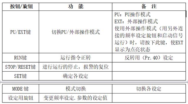 注意:只有當(dāng)Pr.160“擴展功能顯示選擇”的設(shè)定值設(shè)定為“0”時,變頻器的擴展功能參數(shù)才有效。