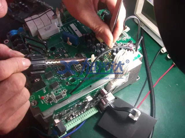 變頻器維修的難點(diǎn)不是如何更換零件,而在于尋找故障點(diǎn)。曾今有客戶(hù)拿變頻器過(guò)來(lái)說(shuō)他們的電工說(shuō)電源燒壞了,要求我們換個(gè)電源。其實(shí)換電源是小事,但是變頻器故障維修不是簡(jiǎn)單的哪里壞了換哪里,而是要找出是哪里的問(wèn)題導(dǎo)致電源燒了。同樣的電源燒壞,可能是不同的原因?qū)е碌,否則即使換了新電源,還是會(huì)不停的繼續(xù)燒壞。我們維修變頻器,不僅要保證修好沒(méi)問(wèn)題,更要盡量保障修好后能長(zhǎng)期持久正常使用。維修工作好比是從一堆大米中挑出幾粒沙子,挑出沙子的結(jié)果行為很容易,但是發(fā)現(xiàn)沙子的經(jīng)過(guò)比較難,很多人只看到“撿沙子”這個(gè)簡(jiǎn)單勞動(dòng),卻沒(méi)有看到“分辨檢測(cè)、排查故障原因”這樣更復(fù)雜的腦力勞動(dòng)和經(jīng)濟(jì)投入。有時(shí)候碰到變頻器故障代碼不清楚,或者別的疑難故障點(diǎn)可能要花上好幾天時(shí)間去排查原因,所以在確定故障點(diǎn)之前誰(shuí)也不能保證多久之內(nèi)一定可以維修好。