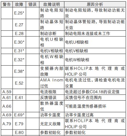 HOLIP海利普變頻器故障維修代碼和報警參數(shù)詳解