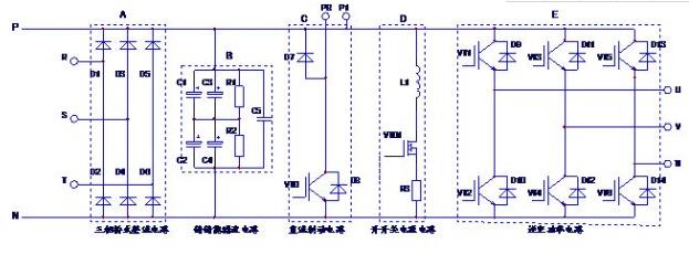 變頻器直流母線故障維修可以說,變頻器主電路的所有部分都是直接并聯(lián)(或 "掛")在直流母線上的,如圖1所示,常規(guī)的小功率機(jī)型大致有a~e等6個電路并聯(lián)在p、n直流母線上,中、大功率機(jī)型只有直流制動電路,需要連接在變頻器外。