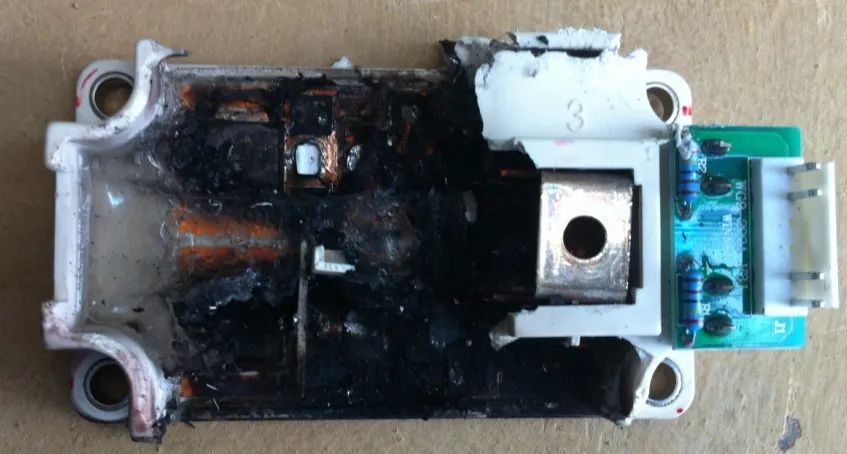 IGBT是電力電子裝置的CPU,在電力電子變流和控制中起著舉足輕重的作用。在變頻器維修工作中,我們發(fā)現(xiàn)IGBT模塊尤其重要。但是,IGBT模塊會(huì)經(jīng)常出現(xiàn)爆炸的情況。下面就結(jié)合案例具體分析一下。
