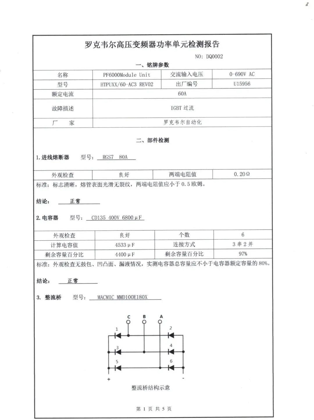 附AB變頻器功率單元檢測(cè)報(bào)告單