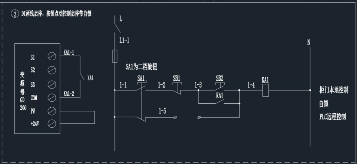 在不考慮正反轉(zhuǎn)控制的情況下,端子啟停主要有2線(xiàn)啟停和3線(xiàn)啟停兩種方式。