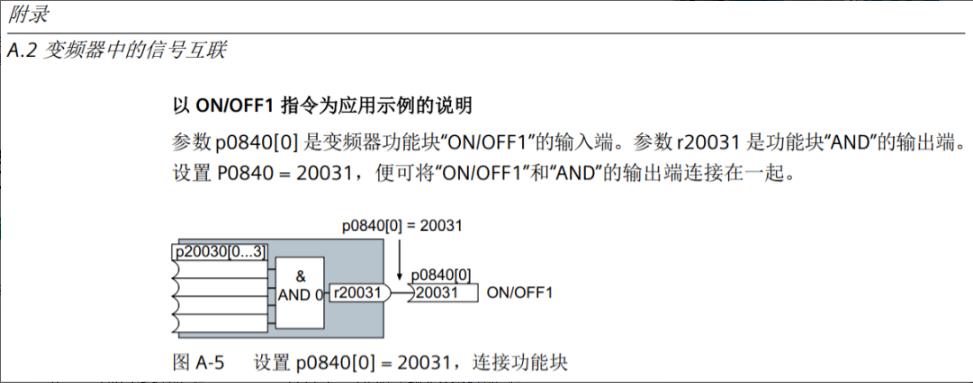 上表中最右側(cè)的列中列出了每個(gè)功能的參數(shù)地址,例如p0840[0]表示ON/OFF1參數(shù),而r2090.0則代表控制字的第0位。設(shè)置p0840[0]=r2090.0就將ON/OFF1和控制字的第0位關(guān)聯(lián)起來(lái),用現(xiàn)場(chǎng)總線(xiàn)改變控制字的第0位就相當(dāng)于改變了ON/OFF1的值,就可以控制變頻器的啟停。