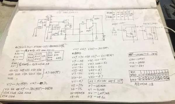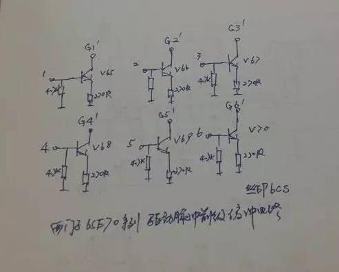 這是主板下來的驅(qū)動(dòng)脈沖緩沖電路,此電路很簡單,用一個(gè)絲印為6C的三極管作為緩沖電路,測和有故障的那一路驅(qū)動(dòng)相對應(yīng)的三極管6C,發(fā)現(xiàn)其C E極漏電,更換6C,故障排除。由于6C CE極漏電就會(huì)使驅(qū)動(dòng)光耦A(yù)1458初極內(nèi)的發(fā)光二極管提供工作回路,內(nèi)部發(fā)光二極管工作,陶瓷片就進(jìn)入工作狀態(tài)了。