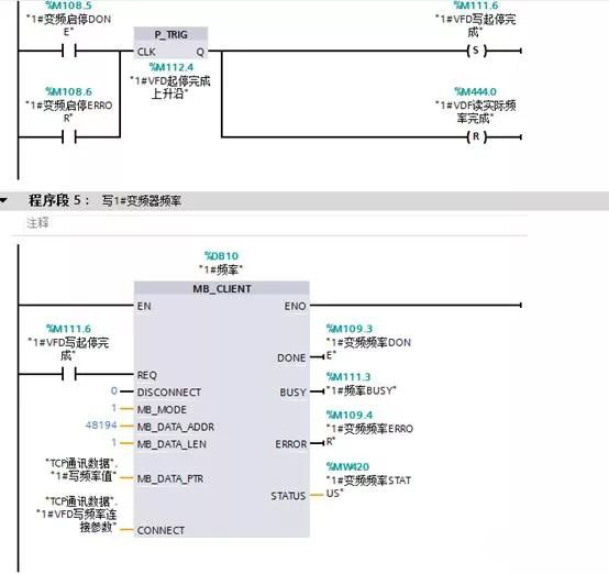 2.對(duì)同一個(gè)變頻器操作的時(shí)候,每調(diào)用一次MB_CLIENT指令的時(shí)候可以在DB塊里重新建立一個(gè)連接,連接參數(shù)里IP地址相同,ID號(hào)不同