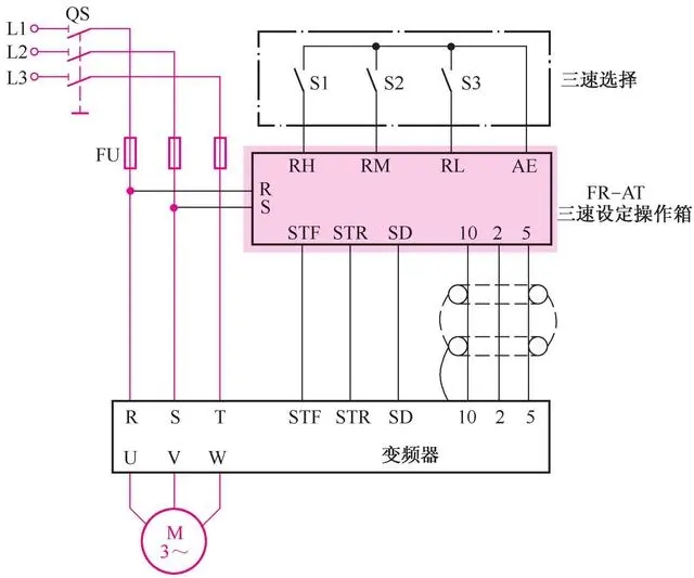 具有三速設(shè)定操作箱的變頻器調(diào)速線路