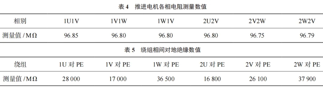 經(jīng)測量分析推進電機繞組電阻和對地絕緣均正常,可以排除負載故障。
