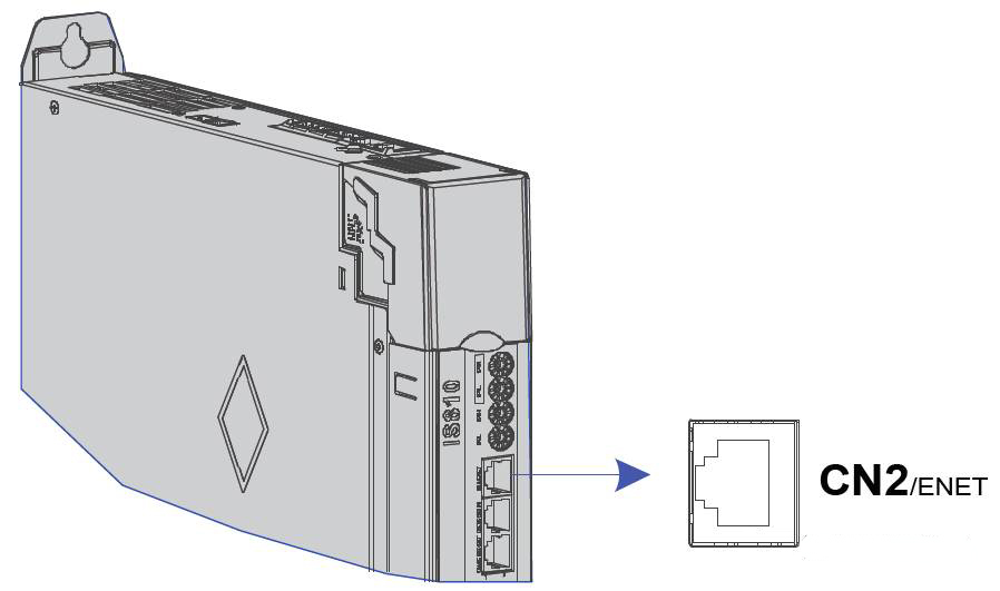 CN2 為連接上位 PC 用的標(biāo)準(zhǔn) EtherNet 端口,目測(cè)可以將驅(qū)動(dòng)器接入上位信息系統(tǒng)(如工控機(jī)或 HMI...等),或者在調(diào)試驅(qū)動(dòng)器時(shí)作為參數(shù)設(shè)置(上傳/下載)和固件升級(jí)的數(shù)據(jù)接口。