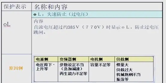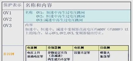 E.OVT報(bào)錯主要分為以下三種情況,用戶可根據(jù)現(xiàn)場情況,從電源側(cè)、變頻器側(cè)(涉及變頻器參數(shù))、電機(jī)側(cè)以及負(fù)載側(cè)進(jìn)行排查并解決報(bào)錯。