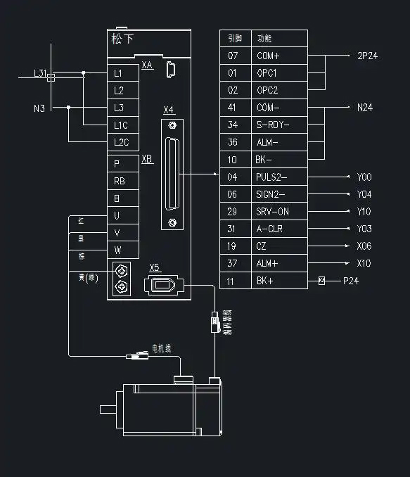 規(guī)劃好IO之后,就可以設(shè)計電路圖,下圖是松下的伺服接線圖