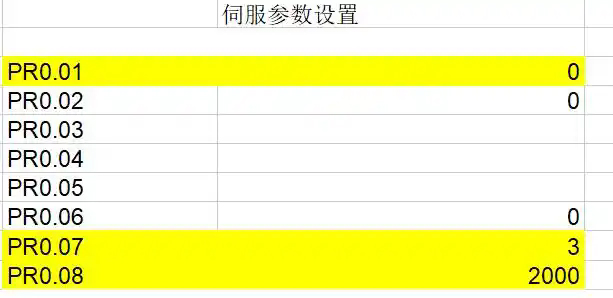 按圖紙接好線路通電檢查,信號無誤之后,我們需要給伺服設(shè)置參數(shù),按照機(jī)械結(jié)構(gòu),絲桿直連,絲桿導(dǎo)程20MM,設(shè)計定位精度0.01MM,所以我們設(shè)置伺服一轉(zhuǎn)脈沖數(shù)為2000pps,控制模式為脈沖+方向:具體參數(shù)如下