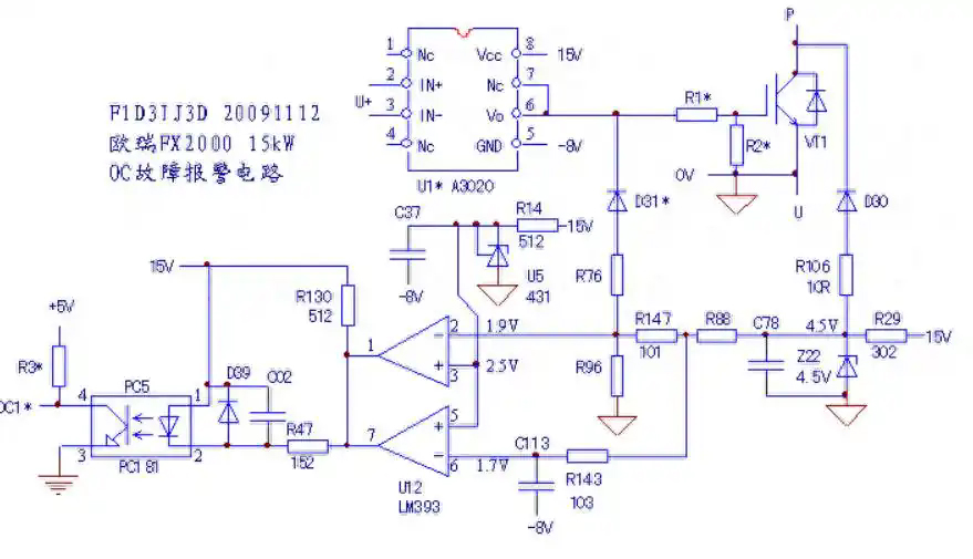 圖一 歐瑞FX2000 15kW變壓器驅(qū)動(dòng)與OC報(bào)警電路